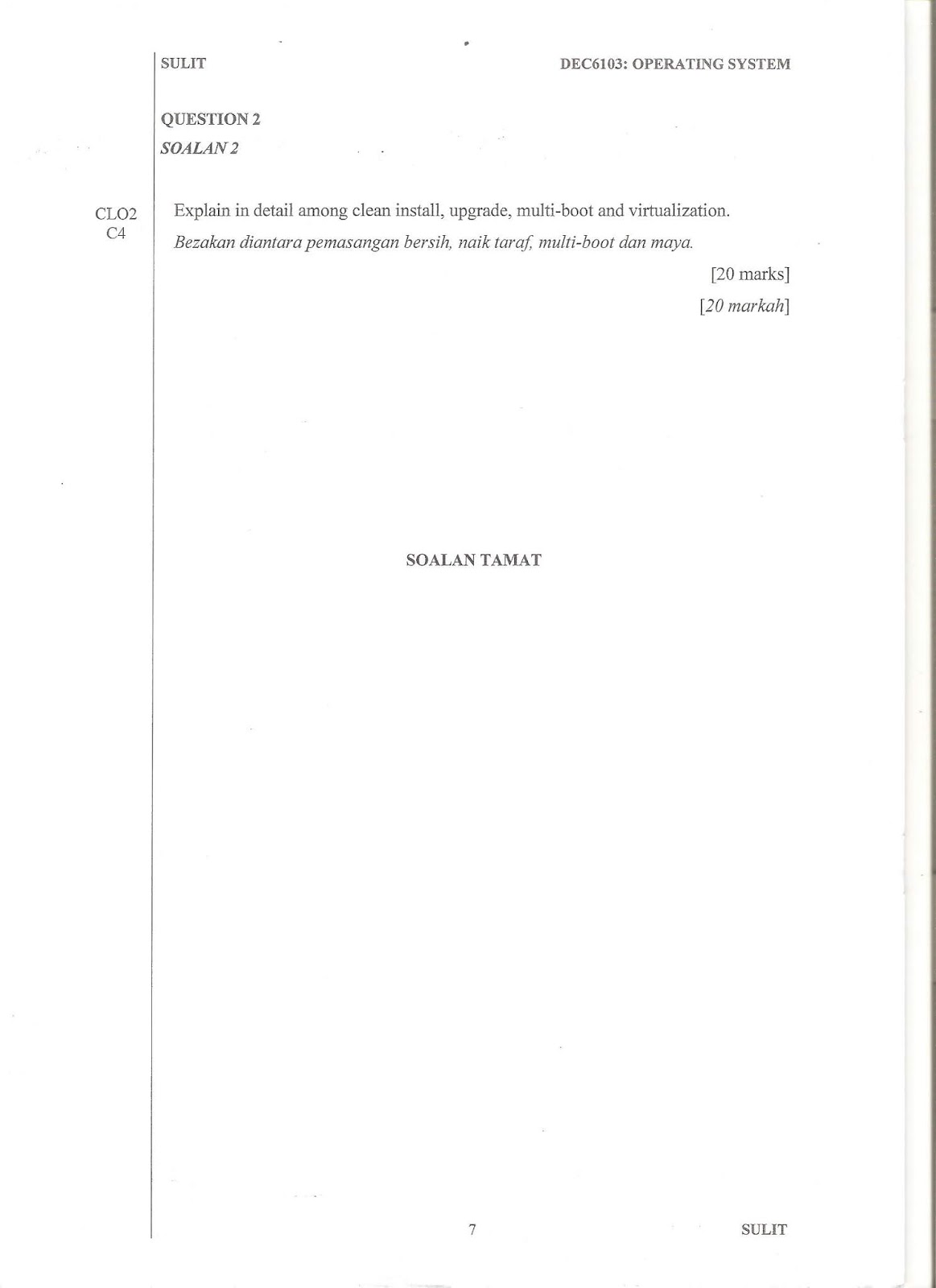 Jadi, saya kongsikan contoh soalan Past Year Operating System di sini.